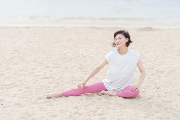 竹林の後は、新舞子ビーチでビーチYOGAです。