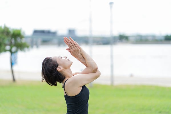 集中している姿をお撮りするために撮影場所を決めたら早速、YOGAを始めてもらいます。