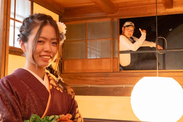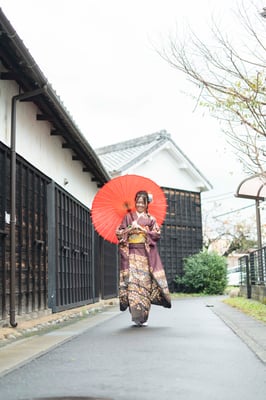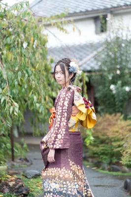 2025年に成人式を行う娘さまの振袖前撮りをご依頼いただき、犬山市でロケーション撮影を行いました。